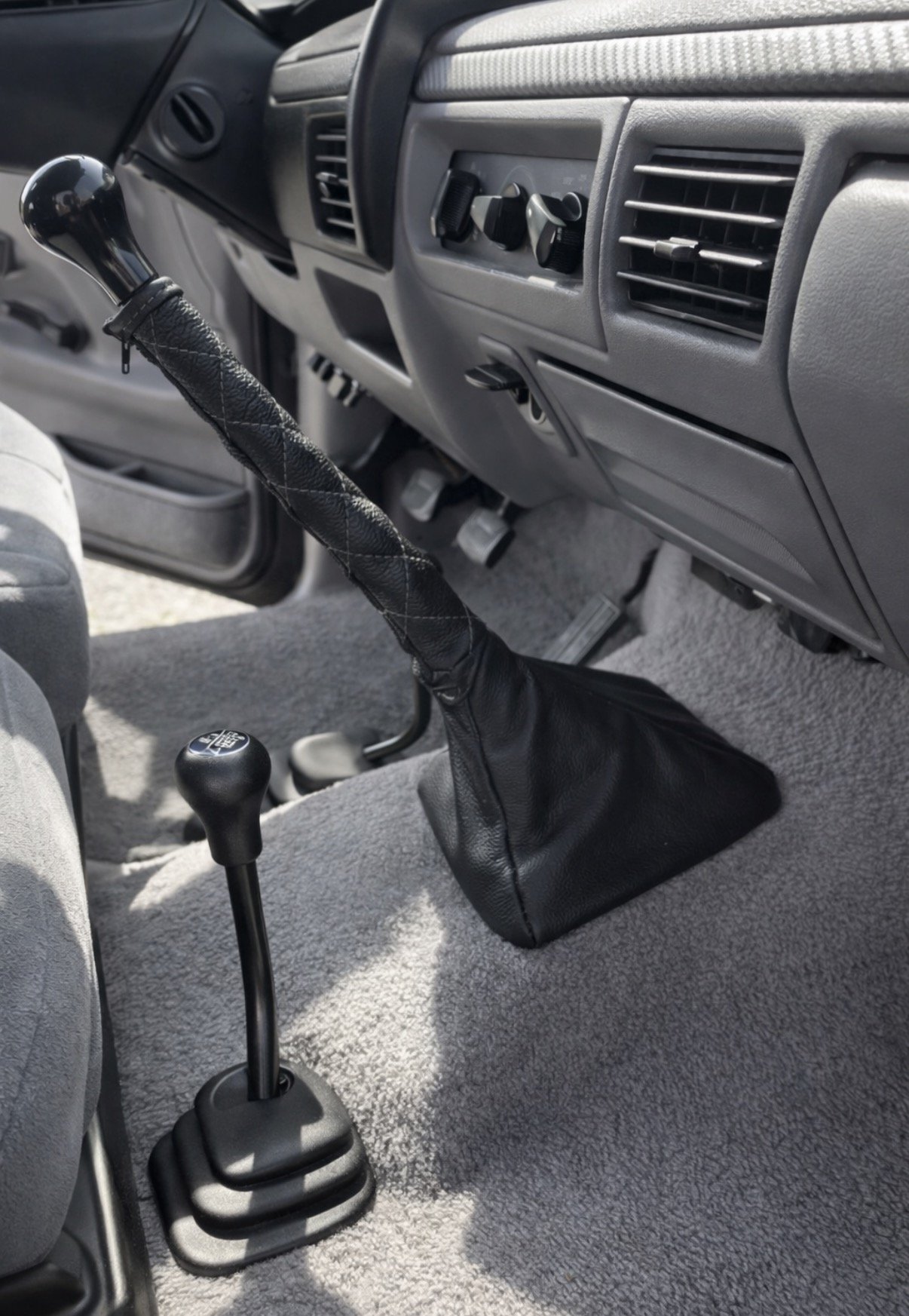 92-96 custom made shift boot cover material is charged by square footage depending on design of the shift boot if custom material is required besides what’s in stock at the time then that will be an additional charge this a service starting at 350$.